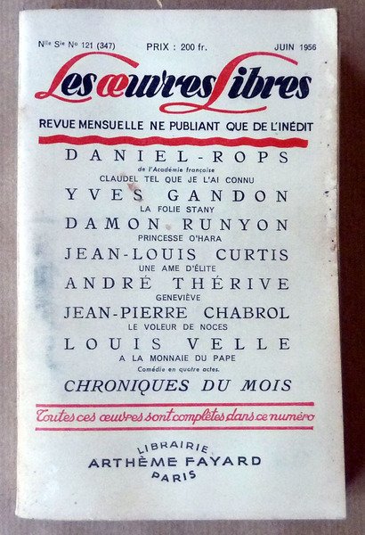 Une revue littéraire brochée de format in 8° de 320 pp. Textes inédits de Daniel-Rops; Gandon; Runyon; Curtis; Jean-Pierre Chabrol (Le Voleur de Noces); Velle. Bon état. Voir photo;