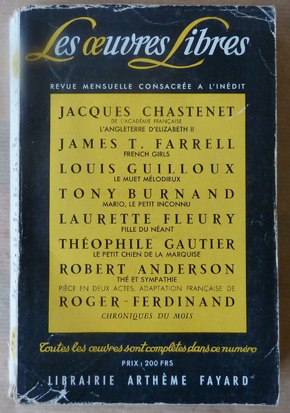 Un volume broché de format in 8° de 320 pp. Bon état. Voir photo. Textes inédits de Chastenet; Farrel; Louis Guilloux; Tony Burnand; L. Fleury; Th. Gautier; R. Anderson.