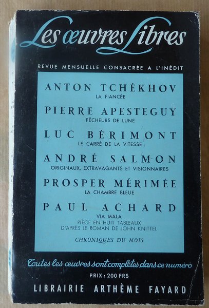 Un volume broché de format in 8° de 320 pp. Bon état. Voir photo. Textes inédits de Tchékhov; Apestéguy; L. Bérimont; A. Salmon; Mérimée; Paul Achard.