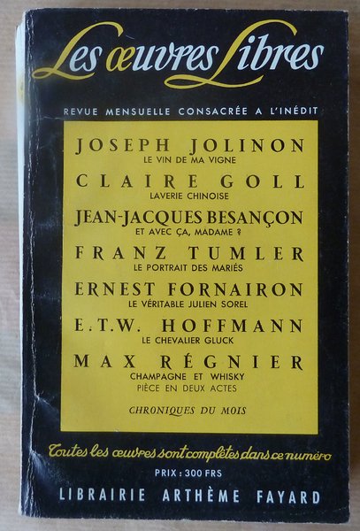 Une revue brochée de format in 8° de 288 pp. Bon état. Voir photo. Textes inédits de J. Jolinon; C. Goll; JJ Besançon; F. Tumler; E. Fornairon; Hoffmann; M. Régnier.