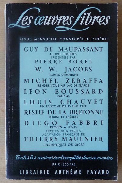 Une revue brochée de format in 8° de 288 pp. Bon état. Voir photo. Textes inédits de Maupassant; WW Jacobs; M. Zeraffa; L. Boussard; L. Chauvet; Restif de La Bretonne; Diego Fabbri.