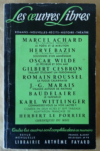 Un volume broché de format in 8° de 288pp. Bon état. Voir photo. Textes inédits de M. Achard; H. Bazin; Wilde; G. Cesbron; R. Roussel; JG Marais; Baudelaire; K. Witlinger; H. Le Poirier.