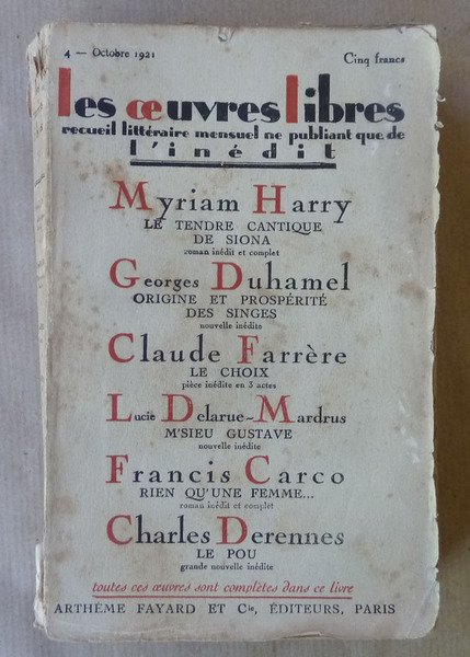 Les Oeuvres libres. N°4; Octobre 1921.