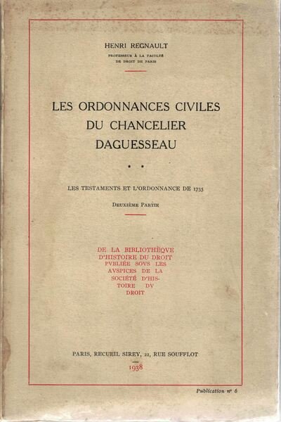 HENRI REGNAULT - Les ordonnances civiles du chancelier Daguessau. Les testaments et l'ordonnance de 1735