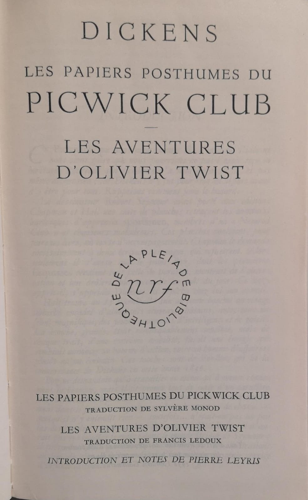 LES PAPIERS POSTHUMES DU PICWICK CLUB. - Les aventures d'Oliver Twist.
