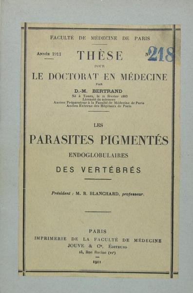 Paris, imprimerie de la faculté de médecine, 1911. Plaquette in/8 broché, 112 pages. Thèse pour le doctorat en médecine.