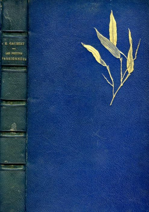 In-16°, pp. (8), VIII, (2), 146, (2) + 5 di catalogo editoriale; elegante legatura dei primi decenni del Novecento in p. pelle blu con motivo vegetale impresso in oro al piatto e titolo in oro su dorso a nervetti. Taglio di testa dorato. Dentelle dorate e sguardie a piuma di pavone. Conservata la bella brossura editoriale figurata. Illustrazioni in b.n. di Chatelaine f.t. e intercalate n.t. Antiporta figurata. Bell'esemplare. Edizione originale, impressa in raffinata veste tipografica. Il Gaubert (Saint-André-de-Sangonis, Hérault, 1881-Parigi, 1945) fu poeta, romanziere e giornalista.