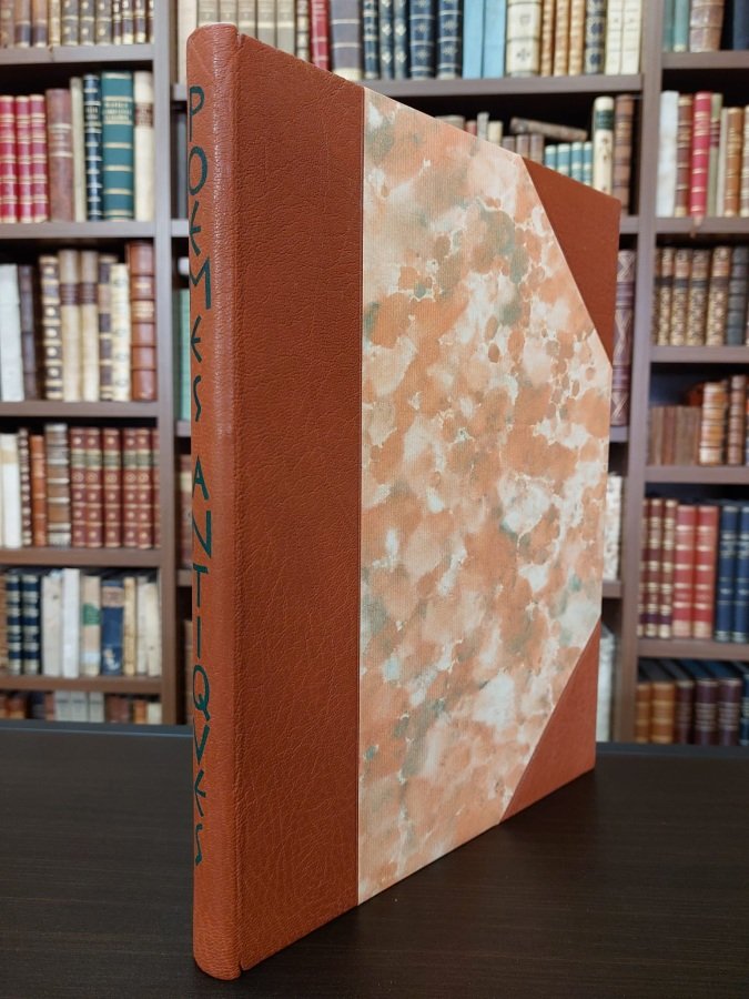 In-4° (cm. 32,1), legatura d'amatore in mezza pelle e angoli con titolo in verde al dorso, taglio superiore dorato, custodia; pp. [6] 89 [7] in barbe, in ottimo stato. Frontespizio interamente illustrato con titoli in rosso e nero. <span style="font-size: 13.3333px;"> Edizione illustrata con 15 eleganti incisioni originali a colori di Edouard Chimot, di cui 1 all'antiporta. Esemplare n. 176 di 300 su <i>papier de Rives</i>. Esemplare impeccabile. (NX)</span>
