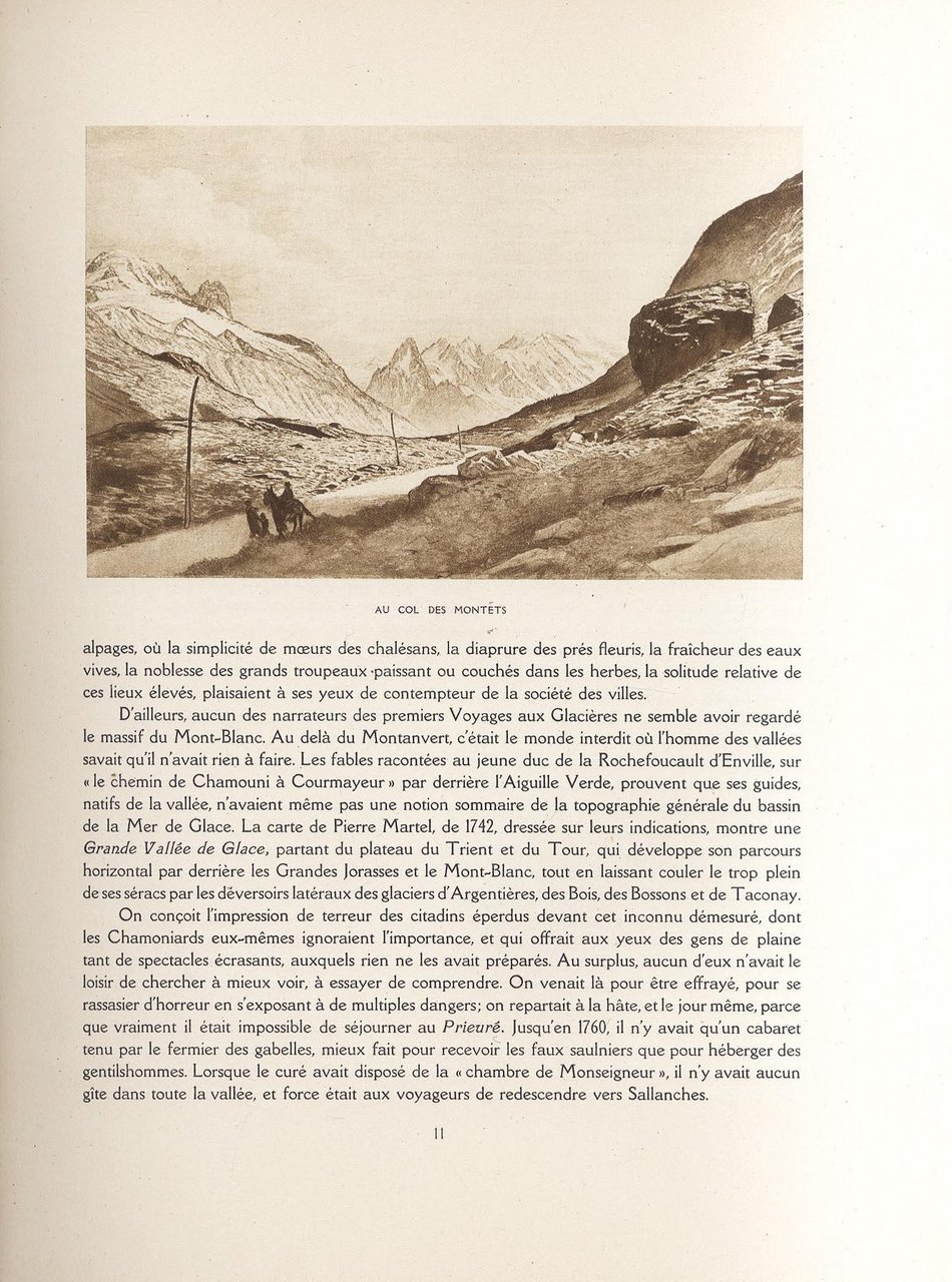 >in-4, pp. (4), 128, elegante leg. coeva in m. pelle ed angoli, piatti in carta varese, titolo e fregi in oro su dorso a quattro nervi, copert. edit. cons. Prima edizione di quest'opera di notevole fascino e pregio iconografico, essendo illustrata da 128 acquerelli e disegni a colori o seppia n.t. e 10 tavole f.t. Esemplare della tiratura comune, senza la doppia suite delle illustrazioni. Ottimo esemplare a pieni margini, freschissimo. Perret 1112: «Superbe album sur le Mont-Blanc. Un des plus beaux livres parus sur la chaîne du Mont-Blanc, peu courant et très recherché en édition originale...». ACL 76.