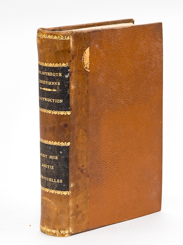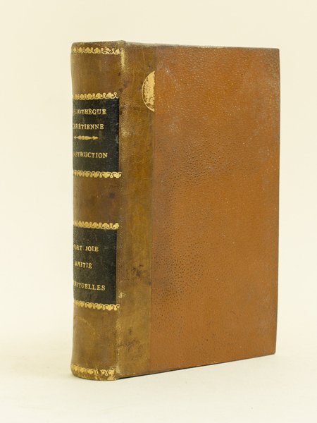 1 vol. in-12 reliure demi-basane marron, coll. Petite Bibliothèque Chrétienne, Alfred Vromant, Bruxelles, s.d. (circa 1880-1890), 128-24-112-110-145 pp. Contient : Les Principales Vérités de la Religion rangées selon la méthode de Saint Ignace ou Un Souvenir de la Retraite annuelle pour chaque jour du mois (Doucin) [ Suivi de : ] La Mort mystique frein des Passions [ Suivi de : ] La Joie Spirituelle [ Suivi de : ] Lois et Douceurs de l'Amitié Spirituelle (Saint Elred) [ Suivi de : ] Motifs de Consolation dans les Souffrances [ Suivi de : ] Le Consolateur des Affligés ou Réflexions sur quelques Paroles de la Sainte Ecriture très propres à consoler les âmes qui sont dans l'affliction (Aymé) Etat très satisfaisant (anciens cachets d'institution religieuse, étiquette de cote en garde, rouss., rel. lég. frottée)