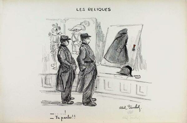 Louis ABEL-TRUCHET (1857-1918) Litografia originale numerata e firmata a mano dall'artista, Esemplare N. 86/275 - Anno 1914-1915Dimensioni folio: 56 x 38,5 cmCon Certificato di Autenticità C.O.A. Rappresentazione satirica riguardante l'esercito francese durante la prima guerra mondiale. Louis Abel-Truchet è stato un pittore francese, esponente del post-impressionismo.Ha studiato all'Académie Julian dove fu allievo dei pittori Benjamin Constant e Jules Joseph Lefebvre. A partire dal 1891 espose i dipinti, in particolare al Salon d'Automne, al Salon des artistes français ed alla Société nationale des beaux-arts di cui fu membro nel 1910. Abel-Truchet privilegia soggetti della moderna vita urbana di Parigi e specificamente il quartiere di Montmartre. È anche conosciuto come ritrattista e per i suoi paesaggi riportati dai suoi viaggi nel sud della Francia ed in Italia. In occasione di un soggiorno in Tunisia, fece anche dipinti orientalisti.Volontario all'inizio della Prima guerra mondiale, fece parte nel 1915 di una squadra pionieristica che si occupava di camuffamento militare. Divenne quindi sottotenente nel 1º reggimento del genio, fu ferito nel settembre 1918 e morì a causa delle sue ferite.Due dipinti furono esposti a titolo postumo all'esposizione degli artisti morti per la patria al Salone d'automne del 1919.Nel XVII arrondissement di Parigi la via dove si trovava la sede dell'Associazione dei pittori-litografi porta ormai il suo nome. Louis ABEL-TRUCHET (1857-1918) Originallithographie nummeriert und vom Künstler von Hand signiert, Kopie Nr. 86/275 - Jahr 1914-1915Foliogröße: 56 x 38,5 cmMit Echtheitszertifikat C.O.A. Satirische Darstellung der französischen Armee während des Ersten Weltkriegs. Louis Abel-Truchet war ein französischer Maler, Vertreter des Postimpressionismus. Er studierte an der Académie Julian, wo er Schüler der Maler Benjamin Constant und Jules Joseph Lefebvre war. Ab 1891 stellte er die Gemälde insbesondere im Salon d'Automne, im Salon des artistes français und in der Société nationale des beaux-arts aus, deren Mitglied er 1910 war. Abel-Truchet privilegiert Themen des modernen Stadtlebens in Paris und insbesondere die Montmartre Nachbarschaft. Er ist auch als Porträtmaler bekannt und für seine Landschaften von seinen Reisen in Südfrankreich und in Italien berichtet. Während eines Aufenthalts in Tunesien fertigte er auch orientalistische Gemälde an. Zu Beginn des Ersten Weltkriegs war er freiwillig Teil eines Pionierteams, das sich 1915 mit militärischer Tarnung befasste. Anschließend wurde er Leutnant im 1. Genie-Regiment, wurde im September 1918 verletzt und starb an seinen Verletzungen. Zwei Gemälde wurden posthum auf der Ausstellung der Künstler ausgestellt, die 1919 auf der Autonomen Automobilausstellung für ihre Heimat starben. Paris, die Straße, in der sich das Hauptquartier der Vereinigung der Maler-Lithographen befand, trägt jetzt seinen Namen. Louis ABEL-TRUCHET (1857-1918) Lithographie originale numérotée et signée à la main par l'artiste, exemplaire n ° 86/275 - Année 1914-1915Taille du folio: 56 x 38,5 cmAvec certificat d'authenticité C.O.A. Représentation satirique concernant l'armée française pendant la Première Guerre mondiale. Peintre français, défenseur du post-impressionnisme, Louis Abel-Truchet étudie à l'Académie Julian où il est l'élève des peintres Benjamin Constant et Jules Joseph Lefebvre. À partir de 1891, il expose les toiles, notamment au Salon d'Automne, au Salon des artistes français et à la Société nationale des beaux-arts dont il est membre en 1910. Abel-Truchet privilégie les sujets de la vie urbaine moderne à Paris et plus particulièrement le Quartier Montmartre. Il est également connu comme portraitiste et pour ses paysages rapportés par ses voyages dans le sud de la France et en Italie. Lors d'un séjour en Tunisie, il réalise également des tableaux orientalistes.Bénévole au début de la Première Guerre mondiale, il fait partie d'une équipe pionnière en 1915 qui s'occupe du camouflage militaire. Il devient alors sous-lieutenant du 1er régiment de génie, est blessé en septembre 1918 et meurt de ses blessures. Deux tableaux sont exposés à titre posthume à l'exposition des artistes décédés pour leur patrie au Salon de l'automobile de 1919. Paris la rue où se trouvait le siège de l'Association des Peintres-Lithographes porte désormais son nom. Louis ABEL-TRUCHET (1857-1918) Original lithograph numbered and signed by hand by the artist, Copy No. 86/275 - Year 1914-1915Folio size: 56 x 38.5 cmWith Certificate of Authenticity C.O.A. Satirical representation concerning the French army during the First World War. Louis Abel-Truchet was a French painter, exponent of post-impressionism. He studied at the Académie Julian where he was a pupil of the painters Benjamin Constant and Jules Joseph Lefebvre. Starting from 1891 he exhibited the paintings, in particular at the Salon d'Automne, the Salon des artistes français and the Société nationale des beaux-arts of which he was a member in 1910. Abel-Truchet privileges subjects of modern urban life in Paris and specifically the Montmartre neighborhood. He is also known as a portrait painter and for his landscapes reported by his travels in the south of France and in Italy. During a stay in Tunisia, he also made orientalist paintings. Volunteer at the beginning of the First World War, he was part of a pioneering team in 1915 that dealt with military camouflage. He then became second lieutenant in the 1st genius regiment, was injured in September 1918 and died of his injuries. Two paintings were exhibited posthumously at the exhibition of the artists who died for their country at the 1919 Autonomous Salon. In the 17th arrondissement of Paris the street where the headquarters of the Association of Painters-Lithographers was located now bears his name.