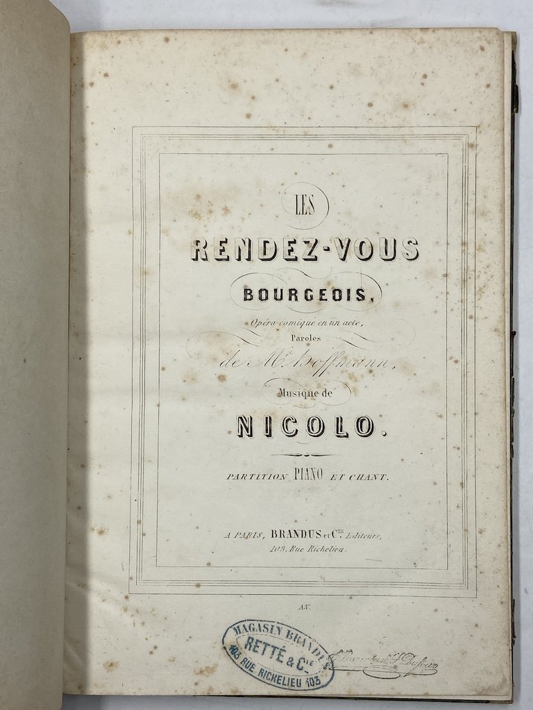 Les Rendez-Vous Bourgeois, Opéra comique en un acte, Paroles de M.r Hoffmann, Musique de Nicolo. Partition Piano et chant.