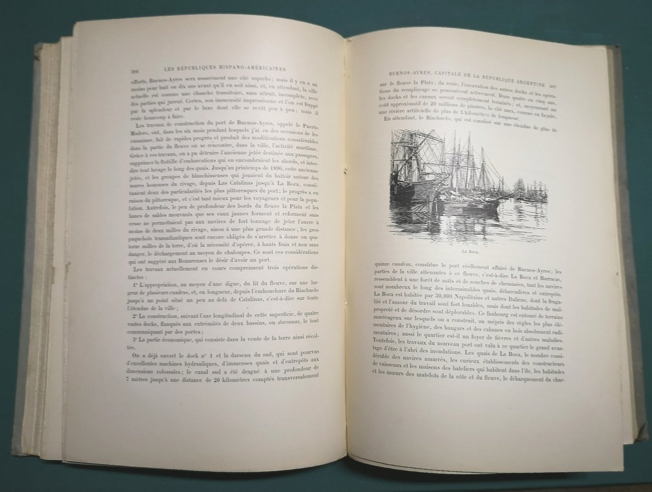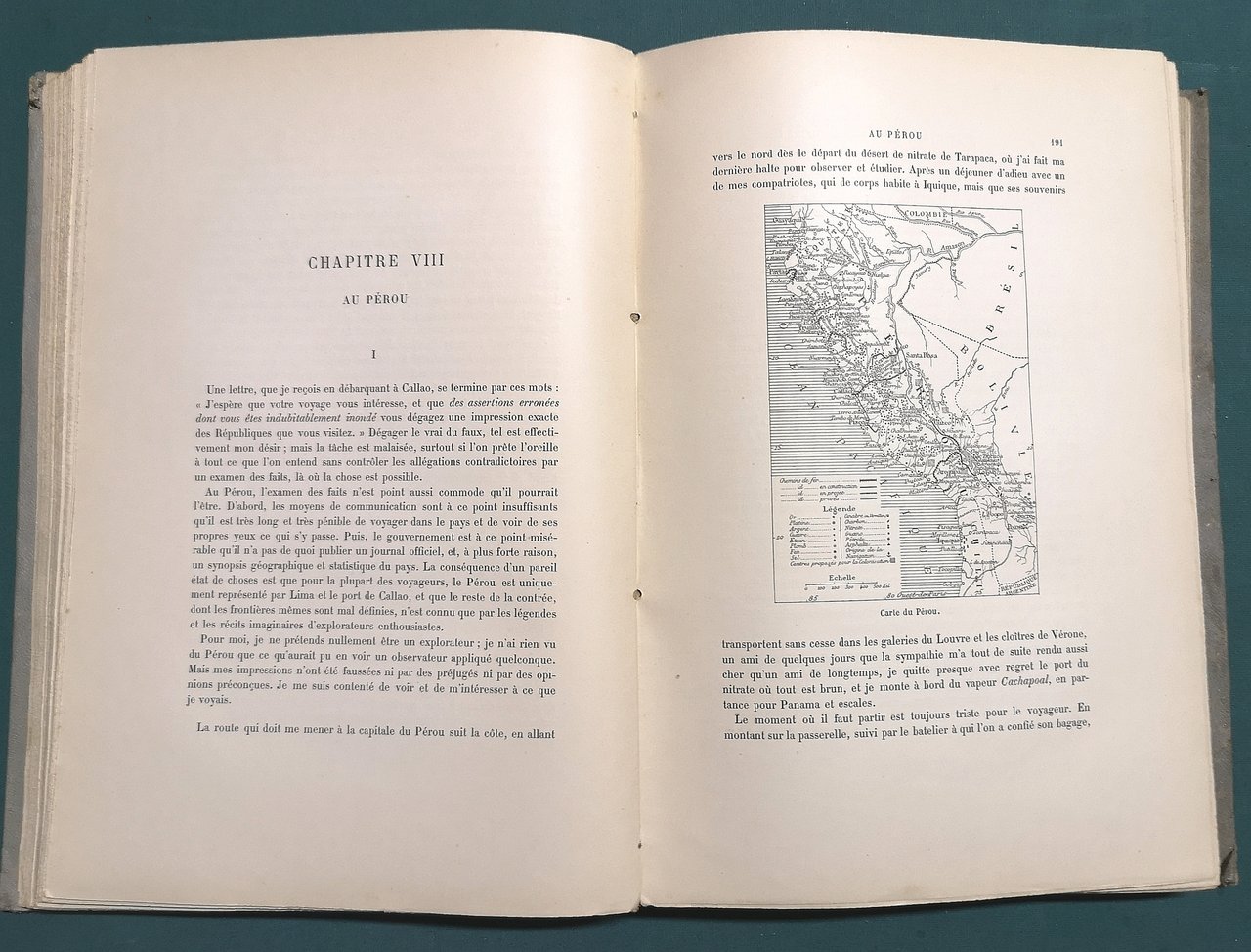 >in-4, pp. 480 con 151 figure in nero e 8 carte grografiche n.t.. Semplice legatura in m. tela (con difetti). Resoconto di viaggio, con illustrazioni di gusto romantico, in America Latina, che descrive con gran dovizia di particolari Argentina, Perù, Cile, Paraguay, Uruguay. Buon esemplare, fresco (salvo gora d'umido alle pp. 128 e 129).