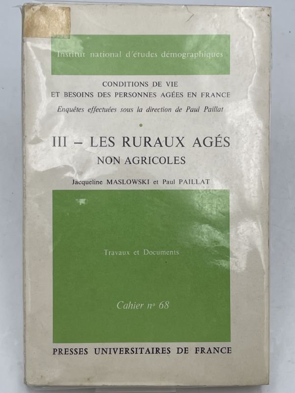 Presses Universitaires de France 1973 Paris, Presses universitaires de France 1973. In-8 broché de XV + 246 pages. Nombreux tableaux. Collection Travaux et documents cahiers n°68. Institut national d'études démographiques. Condition de vie et besoins des personnes agées en France. Enquêtes effectuées sous la direction de Paul Paillat. Scotch sur le haut du dos, sinon bon état.