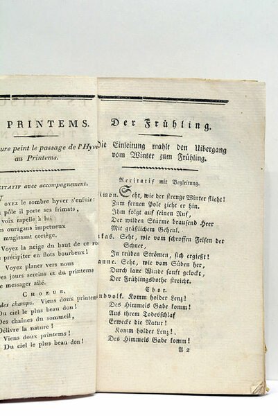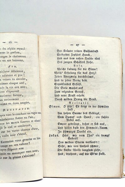 70 pages (manque 1 page à la fin) (10x16cm). Broché. Page de titre empoussiérée. Petite salissure au dernier feuillet. Rare Edition de Mayence. Livret. Musique.