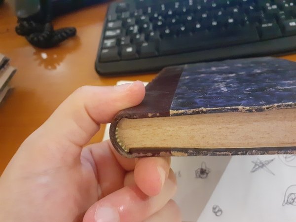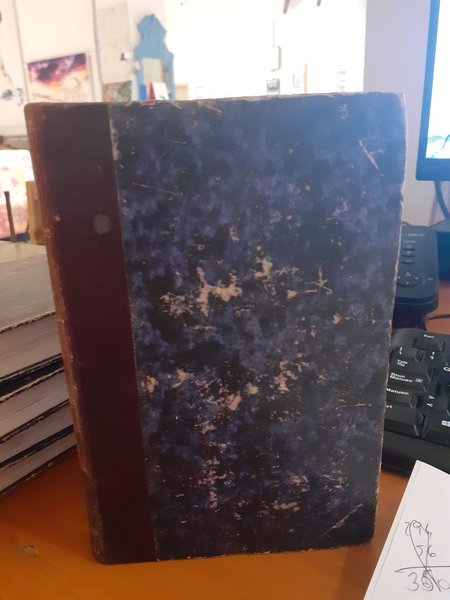Mezzapelle con decorazioni e scritte in oro. Interni ingialliti e con leggere tracce di umidità, ma la rilegatura è robusta.