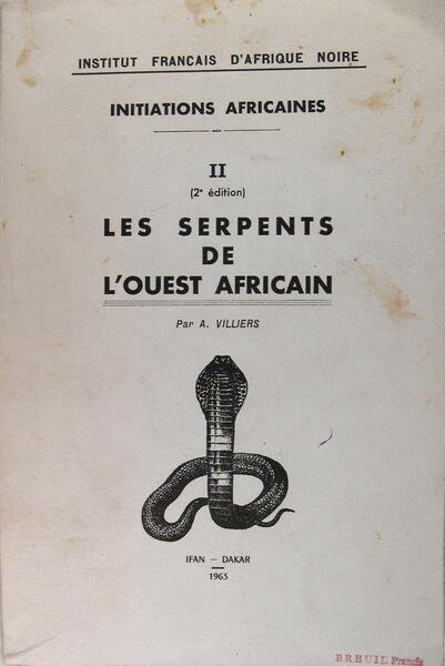 Institut Français d'Afrique Noire, Initiations Africaines - Dakar 1963, 2é édition, in/8 broché, 190 pages. Figures en noir. Petites tache de rousseurs sur la couverture.