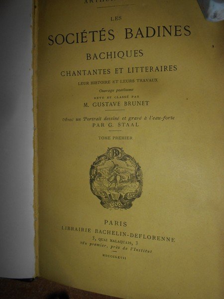 Les Sociétés Badines Chantantes et Litteraires leur histoire et leurs travaux. Ouvrage posthume revu et classé par M. Gustave Brunet