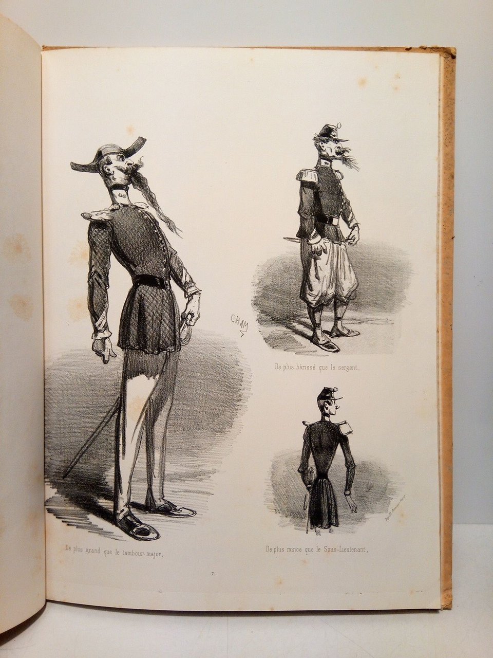 Les tatonnements de Jean Bidoux dans la Carrière Militaire, par Cham. [Conjunto de 18 preciosas litografías en negro, de 3 a 4 figuras por plancha, todas ellas caricaturescas, referentes a las aventuras grotescas en el Ejército Imperial del soldado Jean Bidoux, con leyendas al pie de cada figura]