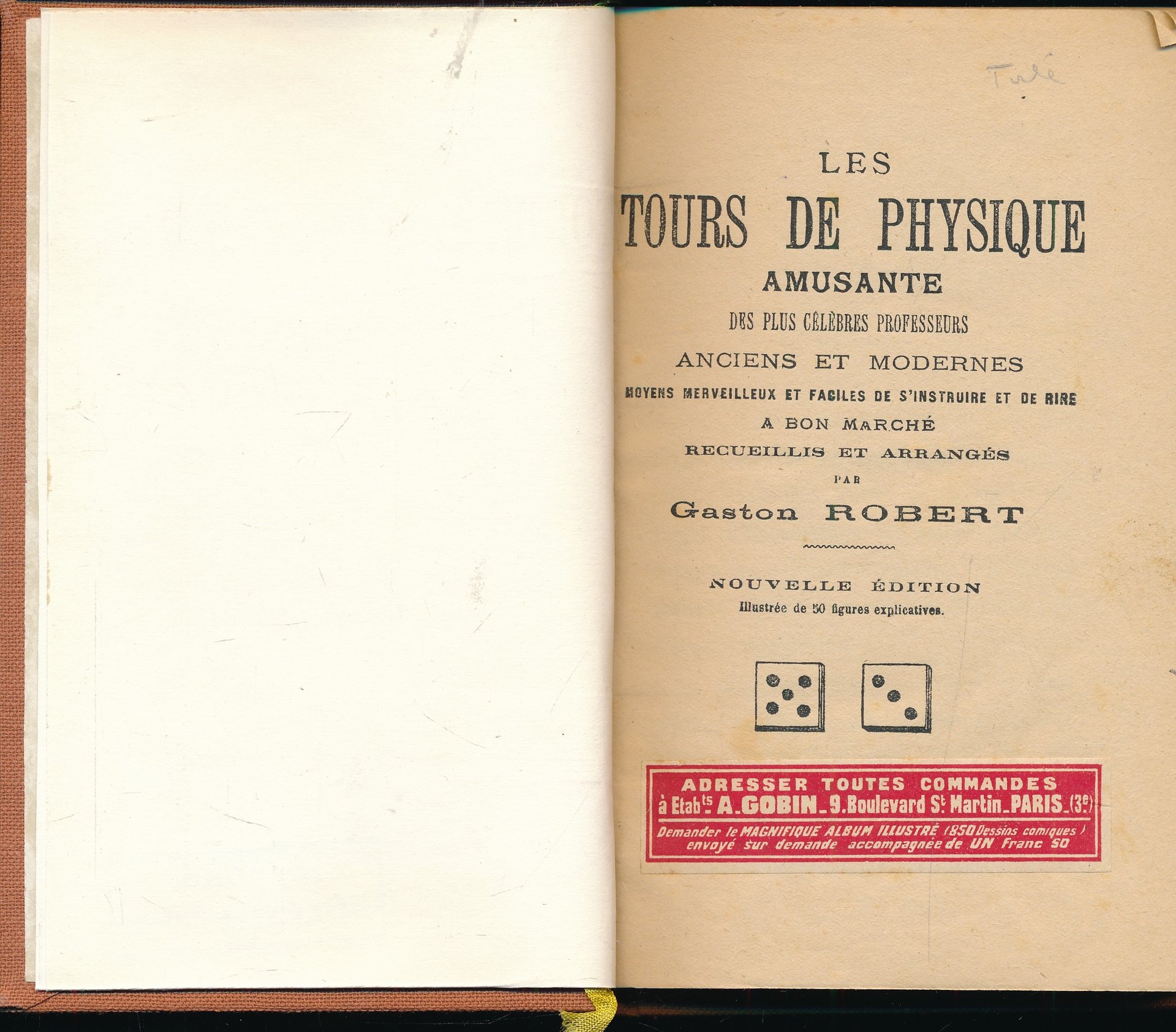 Les tours de physique amusante des plus célèbres professeurs anciens et modernes, moyens merveilleux et faciles de s'instruire et de rire à bon marché