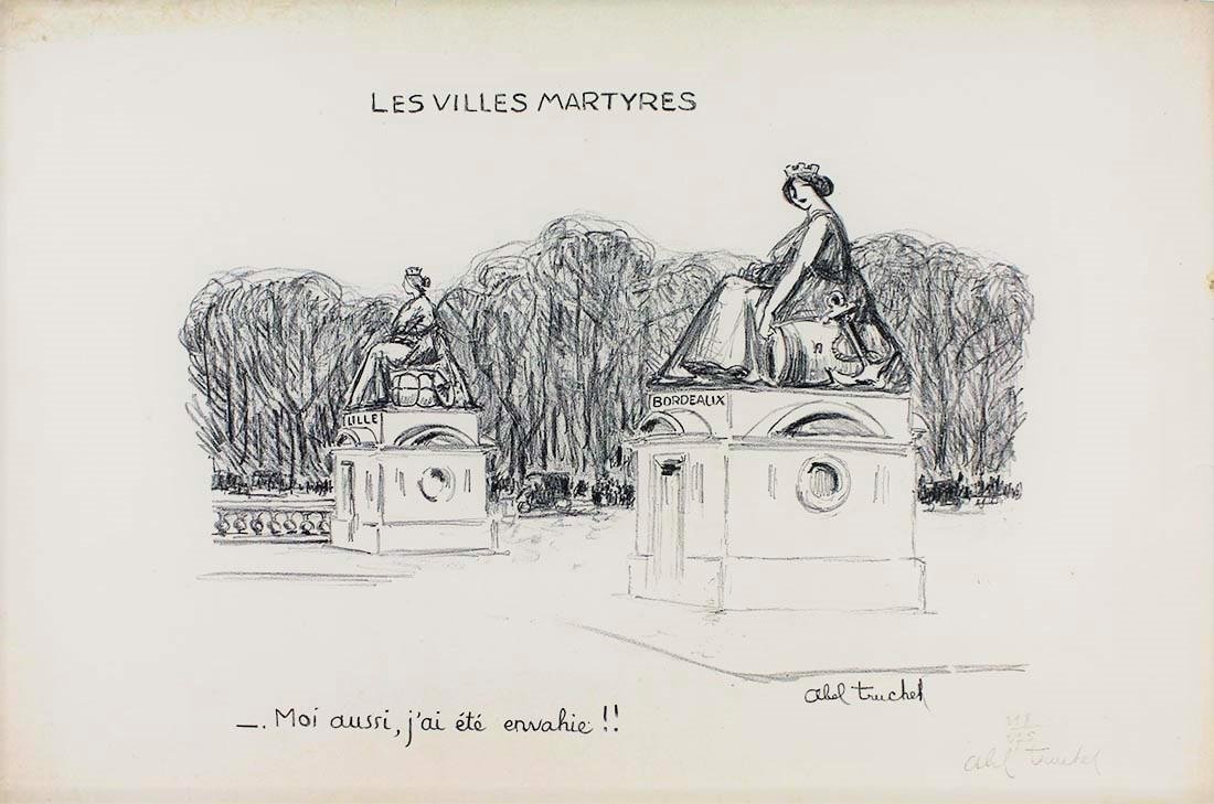 Louis ABEL-TRUCHET (1857-1918) Litografia originale numerata e firmata a mano dall'artista, Esemplare N. 86/275 - Anno 1914-1915Dimensioni folio: 56 x 38,5 cmCon Certificato di Autenticità C.O.A. Rappresentazione satirica riguardante l'esercito francese durante la prima guerra mondiale. Louis Abel-Truchet è stato un pittore francese, esponente del post-impressionismo.Ha studiato all'Académie Julian dove fu allievo dei pittori Benjamin Constant e Jules Joseph Lefebvre. A partire dal 1891 espose i dipinti, in particolare al Salon d'Automne, al Salon des artistes français ed alla Société nationale des beaux-arts di cui fu membro nel 1910. Abel-Truchet privilegia soggetti della moderna vita urbana di Parigi e specificamente il quartiere di Montmartre. È anche conosciuto come ritrattista e per i suoi paesaggi riportati dai suoi viaggi nel sud della Francia ed in Italia. In occasione di un soggiorno in Tunisia, fece anche dipinti orientalisti.Volontario all'inizio della Prima guerra mondiale, fece parte nel 1915 di una squadra pionieristica che si occupava di camuffamento militare. Divenne quindi sottotenente nel 1º reggimento del genio, fu ferito nel settembre 1918 e morì a causa delle sue ferite.Due dipinti furono esposti a titolo postumo all'esposizione degli artisti morti per la patria al Salone d'automne del 1919.Nel XVII arrondissement di Parigi la via dove si trovava la sede dell'Associazione dei pittori-litografi porta ormai il suo nome. Louis ABEL-TRUCHET (1857-1918) Originallithographie nummeriert und vom Künstler von Hand signiert, Kopie Nr. 86/275 - Jahr 1914-1915Foliogröße: 56 x 38,5 cmMit Echtheitszertifikat C.O.A. Satirische Darstellung der französischen Armee während des Ersten Weltkriegs. Louis Abel-Truchet war ein französischer Maler, Vertreter des Postimpressionismus. Er studierte an der Académie Julian, wo er Schüler der Maler Benjamin Constant und Jules Joseph Lefebvre war. Ab 1891 stellte er die Gemälde insbesondere im Salon d'Automne, im Salon des artistes français und in der Société nationale des beaux-arts aus, deren Mitglied er 1910 war. Abel-Truchet privilegiert Themen des modernen Stadtlebens in Paris und insbesondere die Montmartre Nachbarschaft. Er ist auch als Porträtmaler bekannt und für seine Landschaften von seinen Reisen in Südfrankreich und in Italien berichtet. Während eines Aufenthalts in Tunesien fertigte er auch orientalistische Gemälde an. Zu Beginn des Ersten Weltkriegs war er freiwillig Teil eines Pionierteams, das sich 1915 mit militärischer Tarnung befasste. Anschließend wurde er Leutnant im 1. Genie-Regiment, wurde im September 1918 verletzt und starb an seinen Verletzungen. Zwei Gemälde wurden posthum auf der Ausstellung der Künstler ausgestellt, die 1919 auf der Autonomen Automobilausstellung für ihre Heimat starben. Paris, die Straße, in der sich das Hauptquartier der Vereinigung der Maler-Lithographen befand, trägt jetzt seinen Namen. Louis ABEL-TRUCHET (1857-1918) Lithographie originale numérotée et signée à la main par l'artiste, exemplaire n ° 86/275 - Année 1914-1915Taille du folio: 56 x 38,5 cmAvec certificat d'authenticité C.O.A. Représentation satirique concernant l'armée française pendant la Première Guerre mondiale. Peintre français, défenseur du post-impressionnisme, Louis Abel-Truchet étudie à l'Académie Julian où il est l'élève des peintres Benjamin Constant et Jules Joseph Lefebvre. À partir de 1891, il expose les toiles, notamment au Salon d'Automne, au Salon des artistes français et à la Société nationale des beaux-arts dont il est membre en 1910. Abel-Truchet privilégie les sujets de la vie urbaine moderne à Paris et plus particulièrement le Quartier Montmartre. Il est également connu comme portraitiste et pour ses paysages rapportés par ses voyages dans le sud de la France et en Italie. Lors d'un séjour en Tunisie, il réalise également des tableaux orientalistes.Bénévole au début de la Première Guerre mondiale, il fait partie d'une équipe pionnière en 1915 qui s'occupe du camouflage militaire. Il devient alors sous-lieutenant du 1er régiment de génie, est blessé en septembre 1918 et meurt de ses blessures. Deux tableaux sont exposés à titre posthume à l'exposition des artistes décédés pour leur patrie au Salon de l'automobile de 1919. Paris la rue où se trouvait le siège de l'Association des Peintres-Lithographes porte désormais son nom. Louis ABEL-TRUCHET (1857-1918) Original lithograph numbered and signed by hand by the artist, Copy No. 86/275 - Year 1914-1915Folio size: 56 x 38.5 cmWith Certificate of Authenticity C.O.A. Satirical representation concerning the French army during the First World War. Louis Abel-Truchet was a French painter, exponent of post-impressionism. He studied at the Académie Julian where he was a pupil of the painters Benjamin Constant and Jules Joseph Lefebvre. Starting from 1891 he exhibited the paintings, in particular at the Salon d'Automne, the Salon des artistes français and the Société nationale des beaux-arts of which he was a member in 1910. Abel-Truchet privileges subjects of modern urban life in Paris and specifically the Montmartre neighborhood. He is also known as a portrait painter and for his landscapes reported by his travels in the south of France and in Italy. During a stay in Tunisia, he also made orientalist paintings. Volunteer at the beginning of the First World War, he was part of a pioneering team in 1915 that dealt with military camouflage. He then became second lieutenant in the 1st genius regiment, was injured in September 1918 and died of his injuries. Two paintings were exhibited posthumously at the exhibition of the artists who died for their country at the 1919 Autonomous Salon. In the 17th arrondissement of Paris the street where the headquarters of the Association of Painters-Lithographers was located now bears his name.
