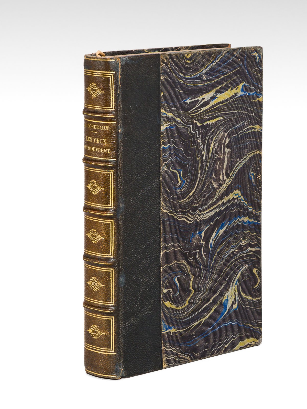 1 vol. in-12 reliure de l'époque demi-chagrin noir, dos à 5 nerfs orné, couvertures conservées, Librairie Plon, Plon-Nourrit et Cie, Paris, s.d. [ 1908 ], 2 ff., 448 pp. Edition originale (sans mention d'édition ni de mille), enrichie d'un envoi d'Henry Bordeaux à l'écrivain Albert de Bersaucourt, et d'une carte de visite de l'auteur "avec ses meilleurs remerciements", insérée dans le faux-titre, sous la dédicace. Dans ce récit d'un couple en pleine séparation, chacun des conjoints va "ouvrir les yeux" sur l'autre. Bon état (dos lég. passé, très bon état par ailleurs).