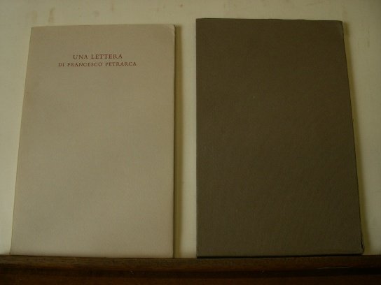 Volume in 4 piccolo in custodia cartonata, brossura editoriale, titolo al piatto ed al dorso, sguardie, dedicatoria, frontespizio stampato a due colori, indice, 35 pp., colophon, bianche finali. Bella e pregiata edizione in lingua latina, italiana (Enzo Alfieri) ed inglese (Betty Radice) della lettera scritta dal Petrarca a Giovanni Anchiseo dove lo incarica di procurargli dei libri perch ' Aspetti che io ti dica di che genere di malattia si tratta? Ecco: non risco a saziarmi di libri.' In perfetto stato di conservazione, preziosa impressione fuori commercio della Stamperia Valdonega.