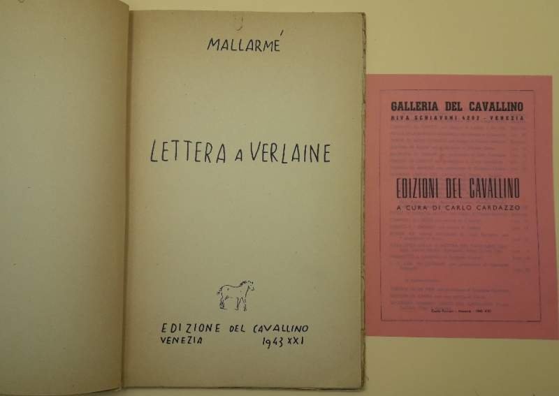 In 8', br. ed. pp. 27, prefazione traduzione e note di Renato Mucci con un fac.simile e dici ritratti di Mallarme'; conservata scheda ed. Fioriture e pieghe ai piatti, strappi all' angolo del piatto post. , segni di attache alle prime pagine al margine sup., interno in buono stato, ordinari segni del tempo. ***Due to bureaucratic reasons, books dated over 70 years old cannot be immediately exported, please contact us before placing the order.***