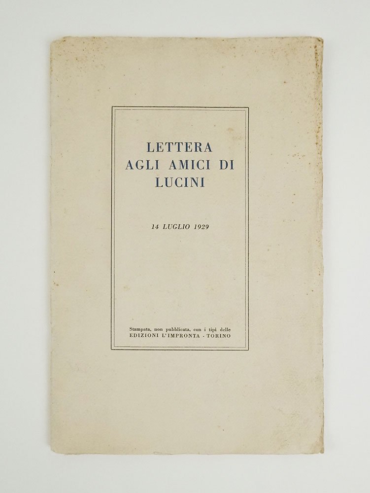 Lettera agli amici di Lucini. 14 luglio 1929