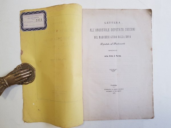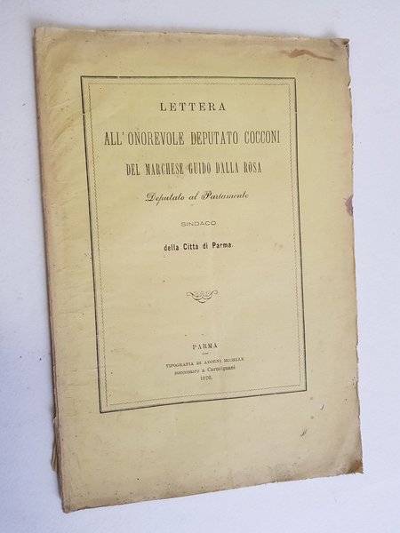 Lettera all'onorevole deputato Cocconi del marchese Guido Dalla Rosa, deputato al Parlamento, sindaco della Città di Parma.