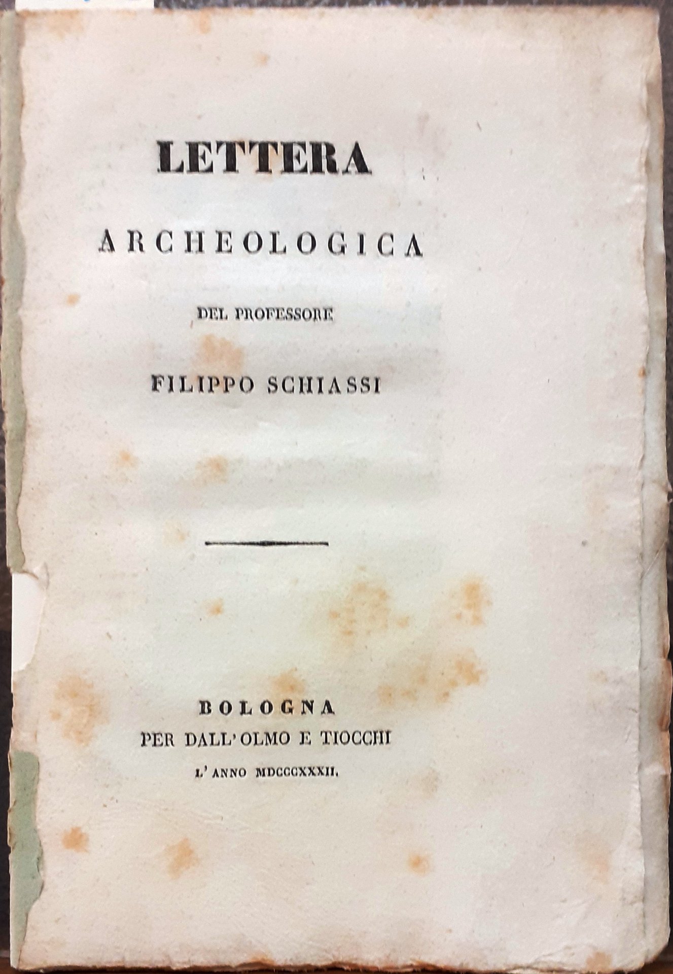 LETTERA ARCHEOLOGICA DEL PROFESSORE FILIPPO SCHIASSI.