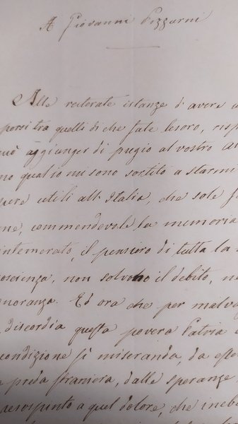 Lettera autografa firmata a Giovanni Pizzurni, collezionista di autografi dal testo patriottico.