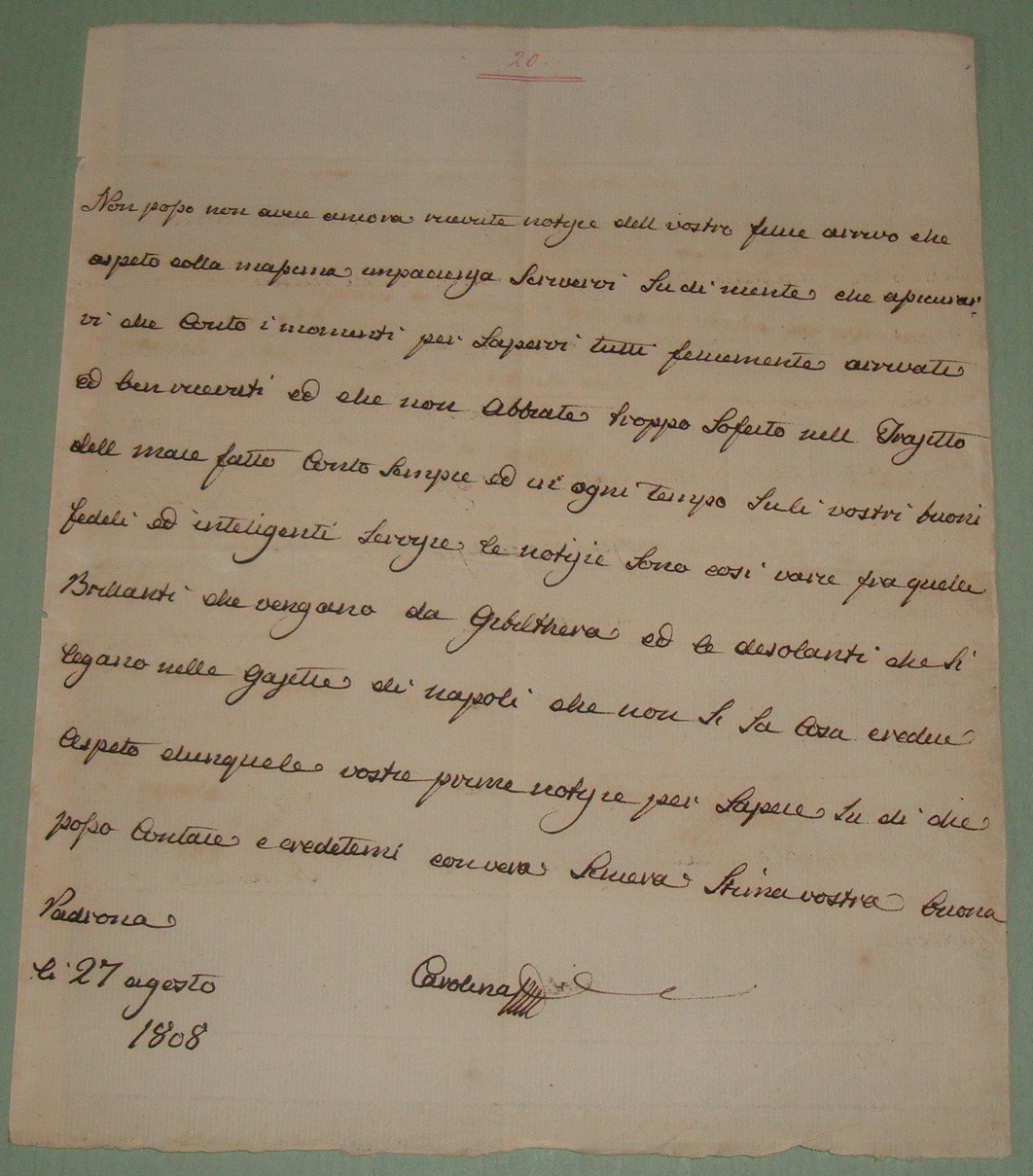 Conclude scrivendo "vostra buona Padrona Carolina".