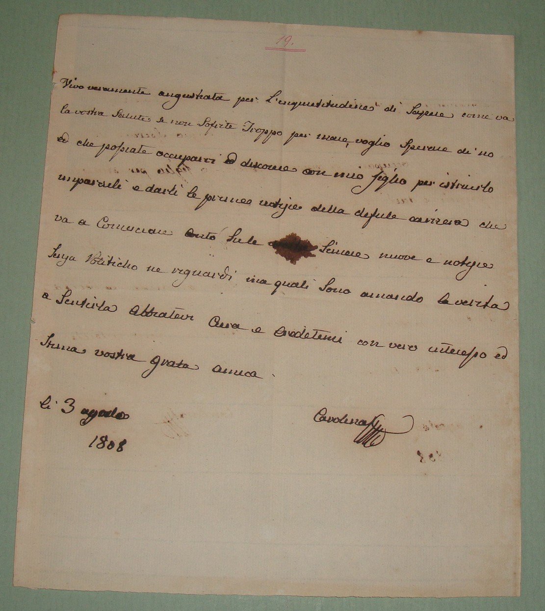 Lettera autografa firmata datata 3 Agosto 1808