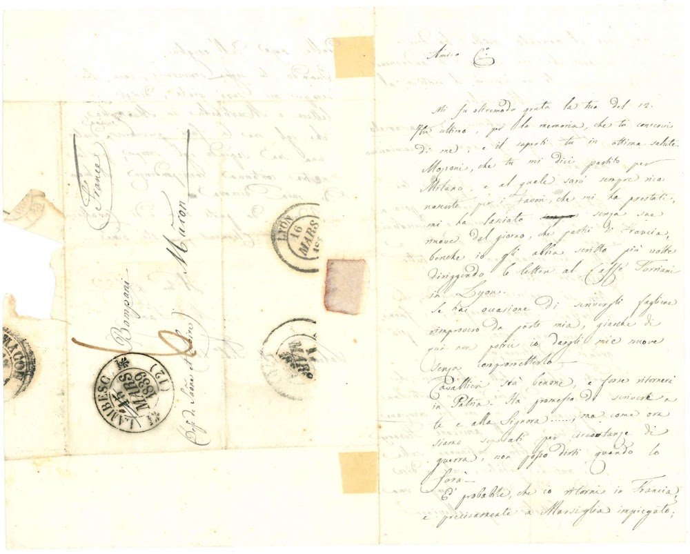 Lettera autografa firmata ed indirizzata al Sig. Bompani a Maçon (Francia). Valencia (Spagna), 18 febbraio 1839