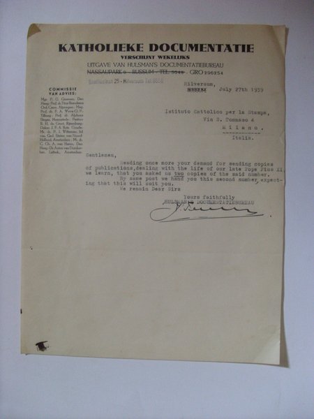 Lettera / Invio KATHOLIEKE DOCUMENTATIE Verschijnt Wekelijks - Hilversum1939
