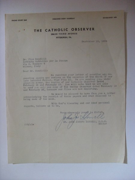 Lettera / Invio THE CATHOLIC OBSERVER - Pittsburgh 1939