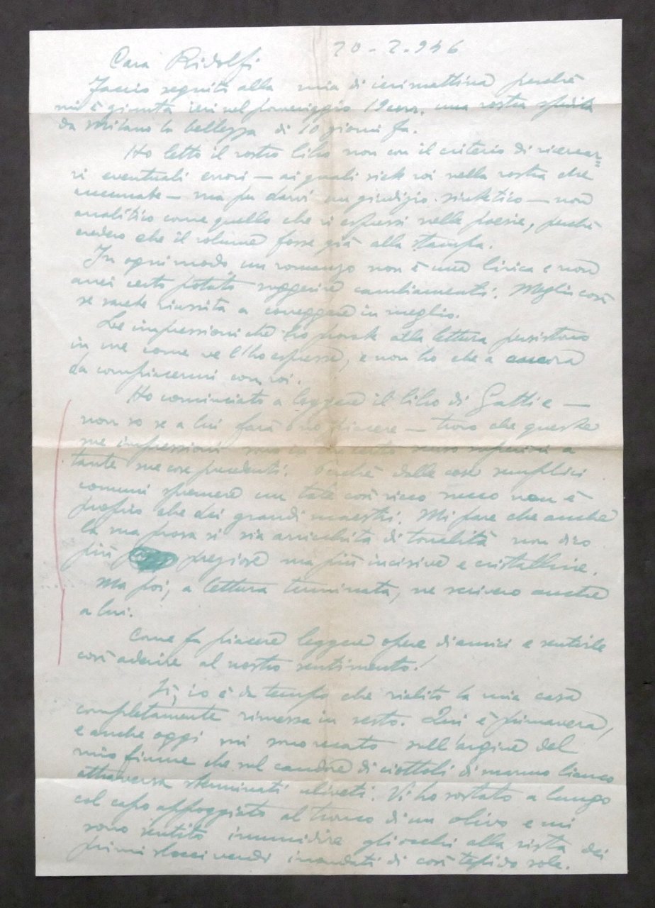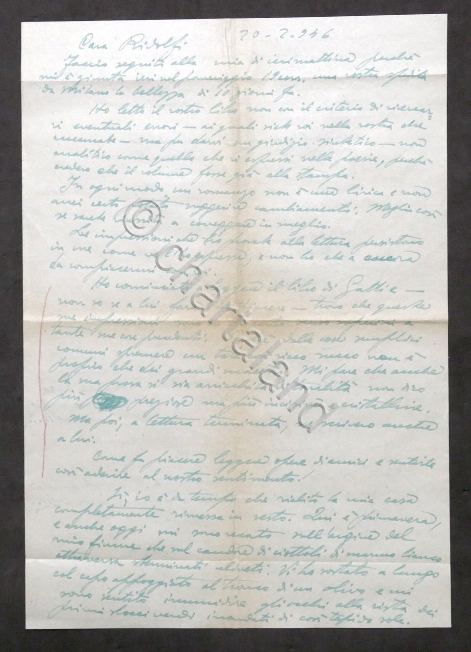 Lettera manoscritta autografo del poeta Garibaldo Alessandrini - 1946