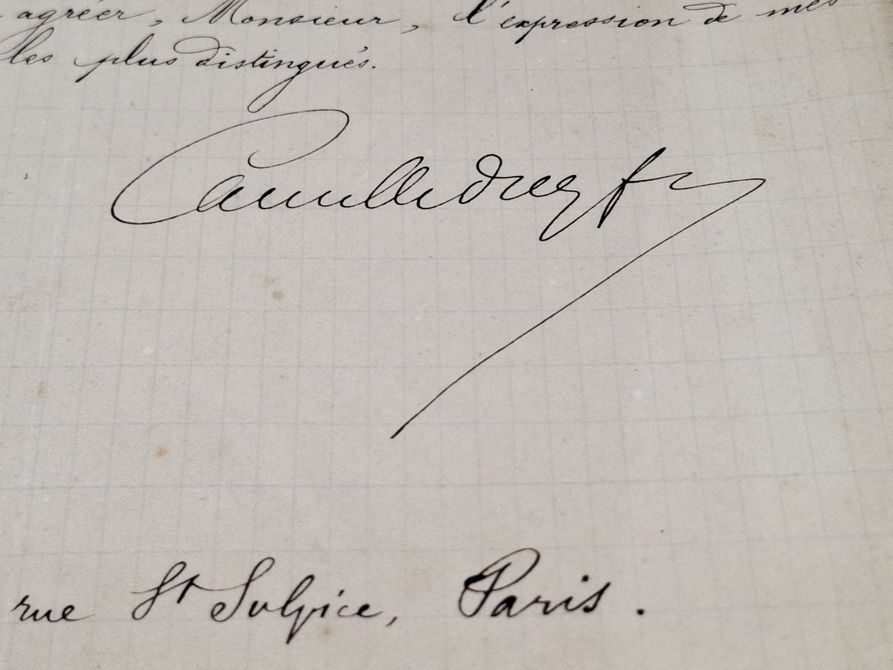 lettera manoscritta con autografo originale di Ferdinand Camille Dreyfus