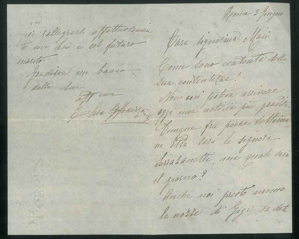 Lettera manoscritta con firma autografa a Maria Mari (Serrazanetti) Roma 3 giugno (1919)