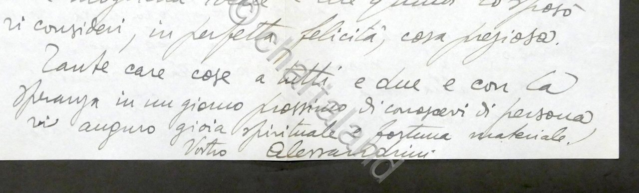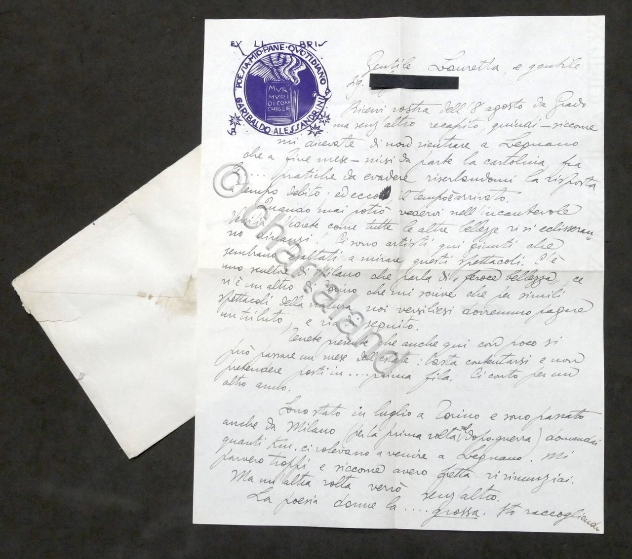 Lettera manoscritta e autografo del poeta Garibaldo Alessandrini - 1949