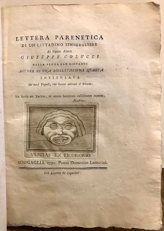 Lettera parenetica di un cittadino sinigagliese al signor abate Giuseppe Colucci dalla Penna San Giovanni autore di una dissertazione quarta intitolata De’ varj popoli, che hanno abitato il Piceno