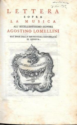 Lettera sopra la musica all'eccellentissimo signore Agostino Lomellini già Doge della Serenissima Repubblica di Genova