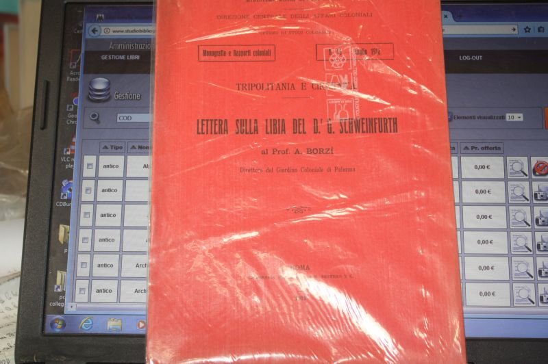 TRIPOLITANIA E CIRENAICA, MINISTERO AFFARI ESTERI, AFFARI COLONIALI, N.15 LUGLIO 1912, LETTERA SULLA LIBIA DEL D.G.SCHERINFURTH, AL PROF BORZI', DIRETTORE DEL GIARDINO COLONIALE DI PALERMO, ROMA TIP.BERTERO 1912