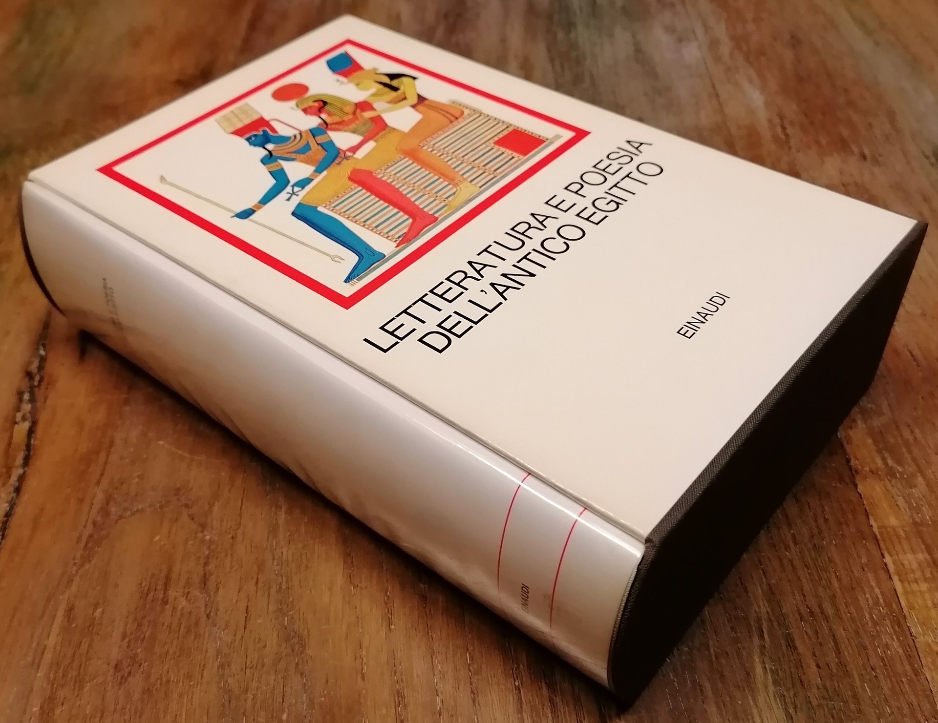 (Egitto; Testi letterari egiziani antichi; Filologia) In 8°, legatura editoriale in piena tela bianca con titoli al dorso, sovraccoperta illustrata, protezione in acetato trasparente, taglio di testa colorato, segnalibro in tessuto, custodia rigida in tela e cartone con illustrazioni ai piatti, pp. XX,697,(3), con 14 tavole a colori fuori testo tratte dai "Monumenti dell'Egitto e della Nubia" (Pisa 1832-44), la grande raccolta di disegni dovuta alla spedizione scientifico-letteraria toscana in Egitto guidata da Ippolito Rosellini. Prefazione di Sergio Donadoni. Introduzione, traduzioni originali e note di Edda Bresciani. Collana "I millenni", prima edizione. Ottimo stato di conservazione.