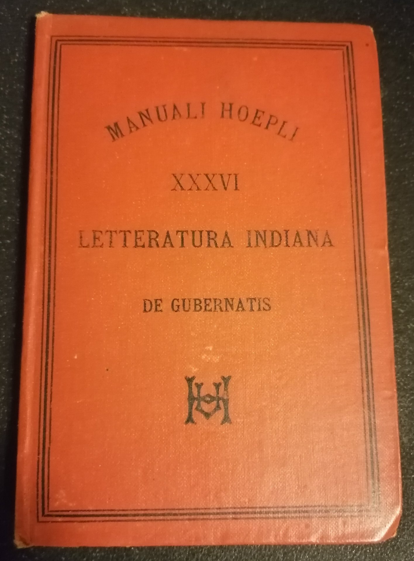(India - Letteratura vedica - Sanscrito - Manuali Hoepli) In 16°, legatura editoriale in piena tela con titoli in nero, pp. VII,(1),159,(1). Prima ed unica edizione. Alcuni versi poetici vergati in minuta e garbata calligrafia al foglio di guardia anteriore. Ben conservato.