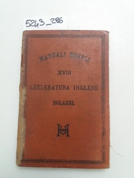 (Collana : Manuali Hoepli) Storia della letteratura inglese - DETTAGLIO DELLE CONDIZIONI : Coperta rovinata sul dorso - all'interno presenza di numerose fioriture- pagine ingiallite - (1.I.8).
