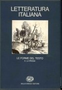 Direzione del piano dell'opera di Alberto Asor Rosa. Testi di: Achille Tartaro (La prosa narrativa antica), Asor Rosa (La narrativa italiana del Seicento), Pieter De Meijer (La prosa narrativa moderna), Giorgio Patrizi (Il Libro del Cortegiano e la trattistica sul comportamento), Maria Luisa Altieri Biagi (Forme della comunicazione scientifica), Maria Serena Sapegno (Il trattato politico e utopico), Liana Cellerino (Prosa d'invenzione morale), Lina Bolzoni (Oratoria e prediche), Albano Biondi (Tempi e forme della storiografia), Angelo Cicchetti e Raul Mordenti (La scrittura dei libri di famiglia). Con 28 illustrazioni in bianco e nero, in tavole fuori testo 8vo, pp. XII da 624 a 1198 Rilegato tela, sovracoperta, custodia (cloth, dust jacket, slip-case) Ottimo (Fine)