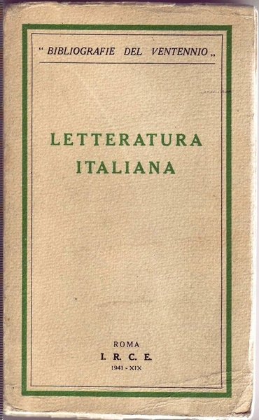 LETTERATURA ITALIANA. Bibliografie del Ventennio.