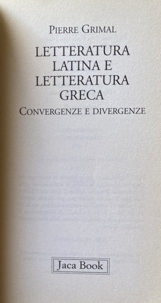 Titolo: Letteratura latina e letteratura greca. Convergenze e divergenze